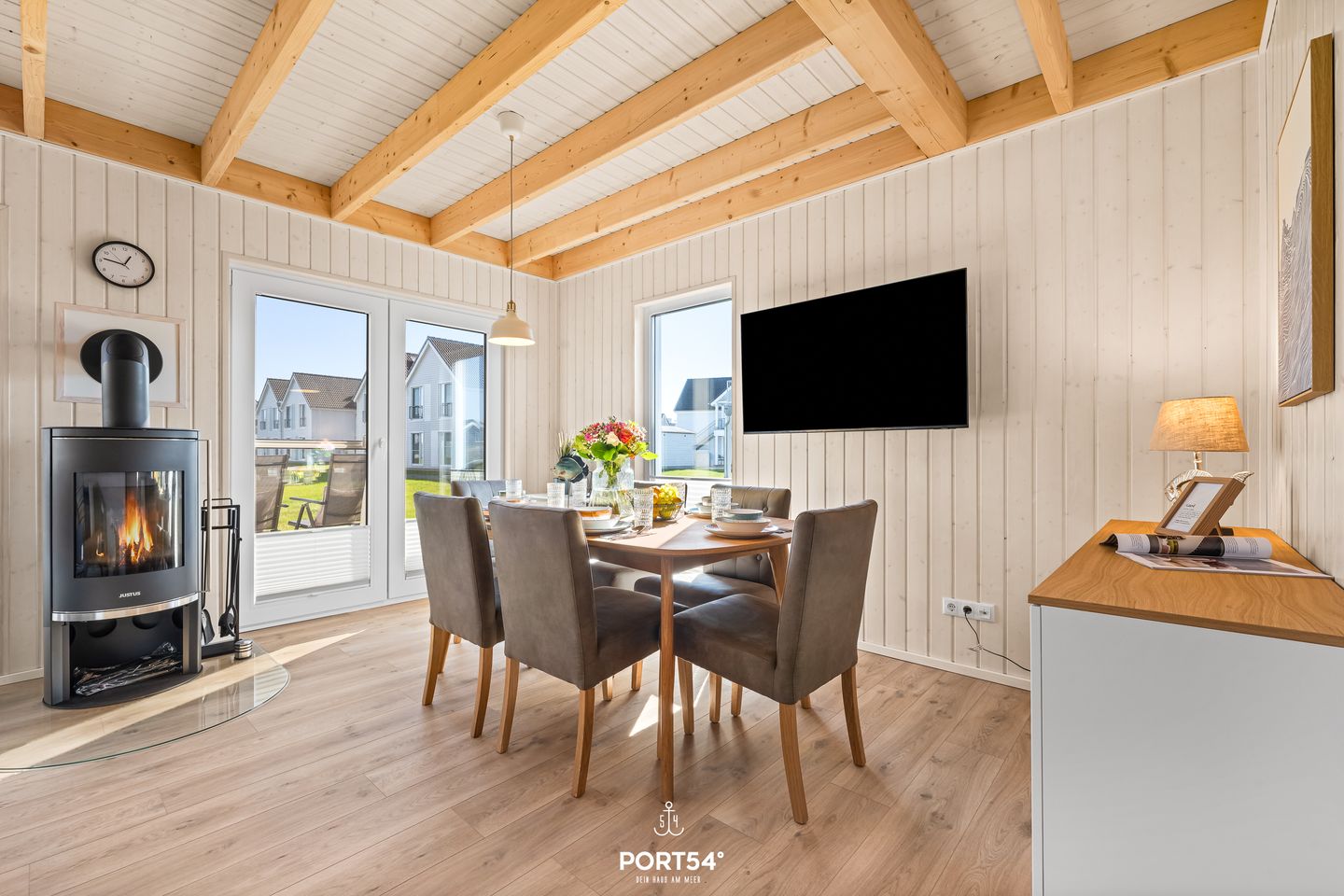 Möchten Sie dem Alltag entfliehen und pure Erholung in Strandnähe erleben? Genießen Sie das besondere Ambiente im geschmackvoll eingerichteten modernen Ferienhaus "Südheide". Mit 2 Schlafzimmern bietet es Gemütlichkeit pur! Ein Schlafzimmer ist mit einem kuscheligen Doppelbett (180x200cm) und das andere mit zwei bequemen Einzelbetten (90x200cm) eingerichtet – ideal für Familien, Freunde oder Paare! Je nach Bedarf können die Einzelbetten auch zu einem Doppelbett zusammengeschoben werden. Die "Südheide" bietet zwei Badezimmer: Eines ist mit einer ebenerdigen Dusche und einer Infrarot-Sauna ausgestattet und im zweiten Bad befindet sich eine Badewanne. Entspannen Sie in der Infrarot-Sauna oder gönnen Sie sich ein Schaumbad in der Badewanne – hier ist Platz für Ihre persönliche Wellnessoase! Der großzügige Wohnbereich lädt zum Relaxen vor dem Kamin ein. Perfekt, um kalte Tage in wohliger Atmosphäre zu verbringen. Die Küche ist vollausgestattet und lässt keine Wünsche offen – zaubern Sie Ihre Lieblingsgerichte und genießen sie diese im offenen Essbereich. Die Terrasse lädt ein, die Sonnenstrahlen und die frische Ostseeluft zu genießen! Ob beim Frühstück in der Morgensonne oder beim Abendessen mit Meeresrauschen im Hintergrund – hier lässt es sich wunderbar verweilen. Vor dem Ferienhaus befindet sich ein Stellplatz. Zudem hat das Haus einen Fahrradschuppen, damit Sie Ihre mitgebrachten Fahrräder sicher unterstellen können.
