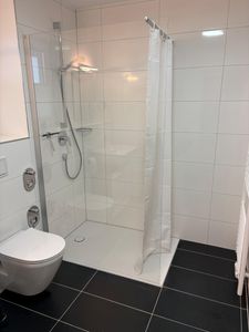 Ihr privater Wellnessbereich: ein exklusives Badezimmer mit bodengleicher Dusche und eigener Infrarotkabine – genießen Sie wohltuende Entspannung nach einem Tag am Meer.