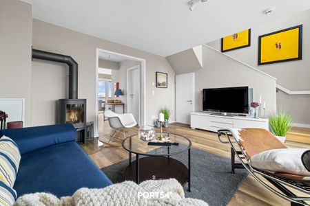 Die offen gestaltete Küche ist hochwertig ausgestattet und lässt keine Wünsche offen: Induktionsherd, Spülmaschine, Kaffeemaschine, Espressomaschine, Wasserkocher, Toaster sowie Geschirr und Küchenutensilien stehen bereit.
