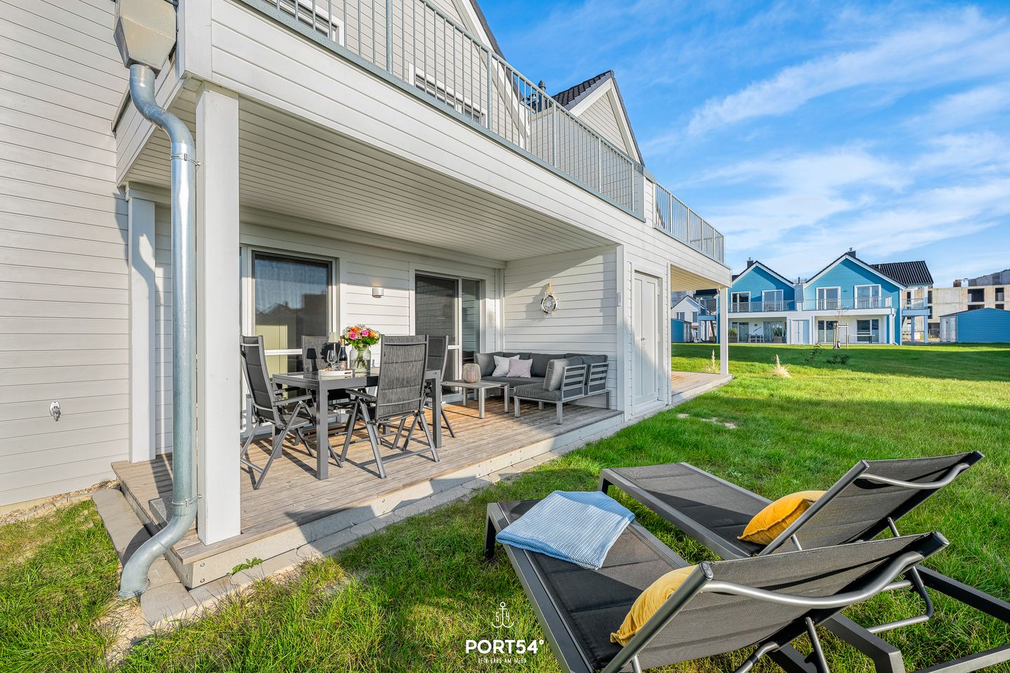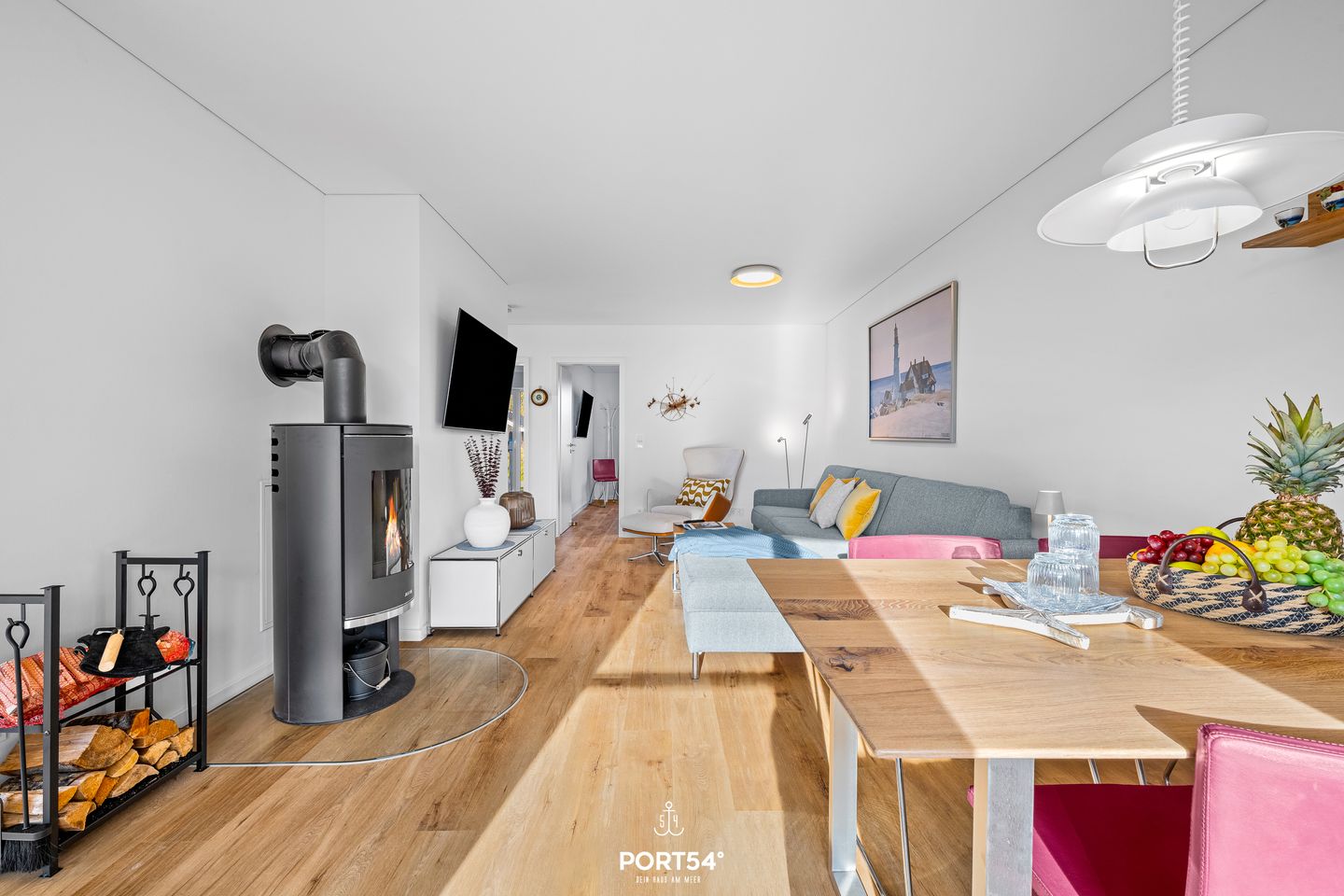 Willkommen in der Ferienwohnung Katharina Olpenitz, einem charmanten Rückzugsort im OstseeResort Olpenitz. Nur wenige Meter vom Meer entfernt erwartet Sie ein stilvoll eingerichtetes Urlaubsdomizil, das mit seiner Kombination aus Komfort, Design und maritimer Leichtigkeit begeistert. Auf 82m² bietet die Wohnung Platz für bis zu vier Personen – ideal für Paare, Familien oder kleine Freundesgruppen. Im gemütlichen Wohnzimmer laden ein komfortables Sofa und ein Smart TV zum Entspannen ein. An kühleren Tagen schafft der Kaminofen eine besonders behagliche Atmosphäre. Direkt angrenzend öffnet sich die überdachte Terrasse – ausgestattet mit hochwertigen Gartenmöbeln, Strandkorb und Sonnenliegen. Hier lässt sich der Tag bei einem Glas Wein ausklingen oder schon morgens beim Frühstück die frische Ostseeluft genießen.