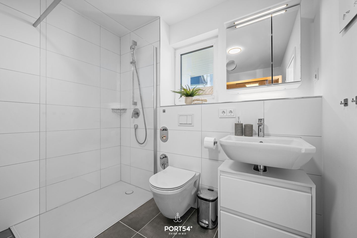 Das elegante Badezimmer lädt zum Wohlfühlen ein: Neben einer bodengleichen Dusche erwartet Sie eine private Infrarotkabine, die Wellness-Momente wie im Spa verspricht. Eine Waschmaschine sowie Bügeleisen und Wäscheständer stehen ebenfalls zur Verfügung – praktisch, wenn der Urlaub etwas länger dauert. Auch Ihr vierbeiniger Begleiter ist herzlich willkommen. Ein Privatparkplatz direkt am Haus, eine Ladestation für Elektroautos sowie kostenfreies WLAN ergänzen den Komfort.