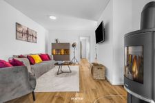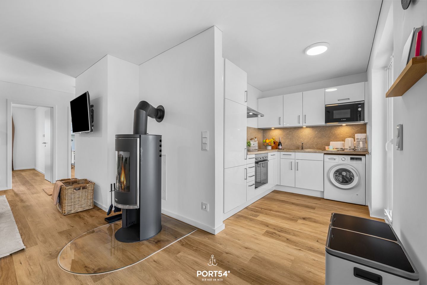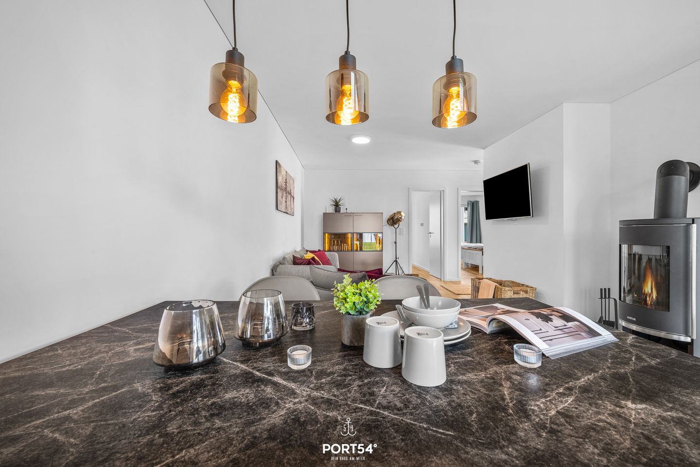 Ankommen, durchatmen, wohlfühlen – Die Ferienwohnung "Sand und Seele" in Olpenitz heißt Sie willkommen in maritimer Umgebung an der Ostsee. Die moderne Erdgeschosswohnung in einer hochwertigen Ferienanlage bietet auf 81 m² ein stilvolles Ambiente – ideal für Paare und Familien. Im Zentrum der Wohnung erwartet Sie ein heller, offen gestalteter Wohn- und Essbereich mit behaglichem Kaminofen, komfortablem Sofa, einem Sessel, einem Smart-TV und WLAN sowie diverse Spiele. Hier können Sie mit Ihren Liebsten gemeinsame Stunden verbringen. Die vollausgestattete Küche mit Spülmaschine, Mikrowelle und Filterkaffeemaschine lässt keine Wünsche offen - ideal für gemeinsame Kochabende. Zwei separate Schlafzimmer bieten Platz für bis zu vier Personen. Im ersten Schlafzimmer erwartet Sie ein bequemes Doppelbett (180x200 cm), im zweiten zwei Einzelbetten (100x200 cm) und ein moderner Smart-TV. Beide Räume bieten je einen Kleiderschrank sowie Verdunkelungsmöglichkeiten für entspannte Nächte. Auf Familien mit kleinen Kindern ist die Ferienwohnung passend eingerichtet: Ein Babybett mit Matratze, sowie ein Kinderhochstuhl und ein Bollerwagen sind vorhanden, ebenso wie eine Spielecke im Schlafzimmer.