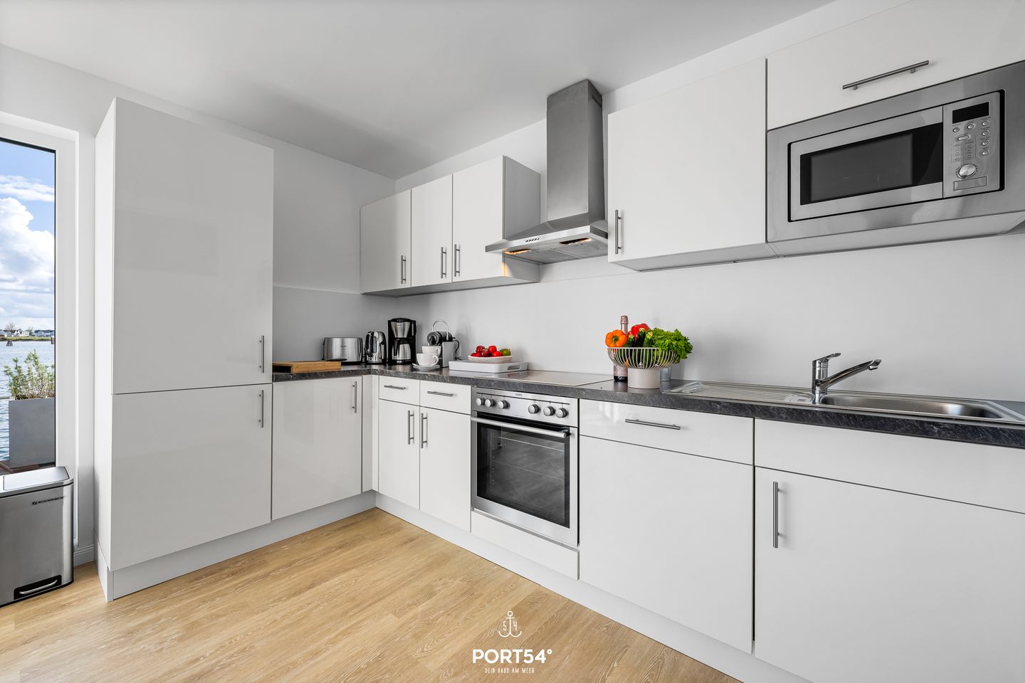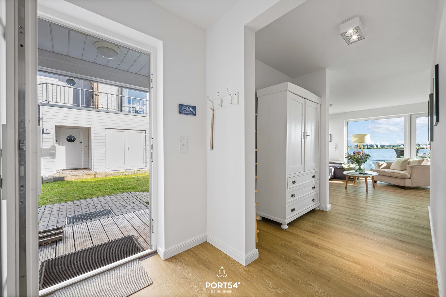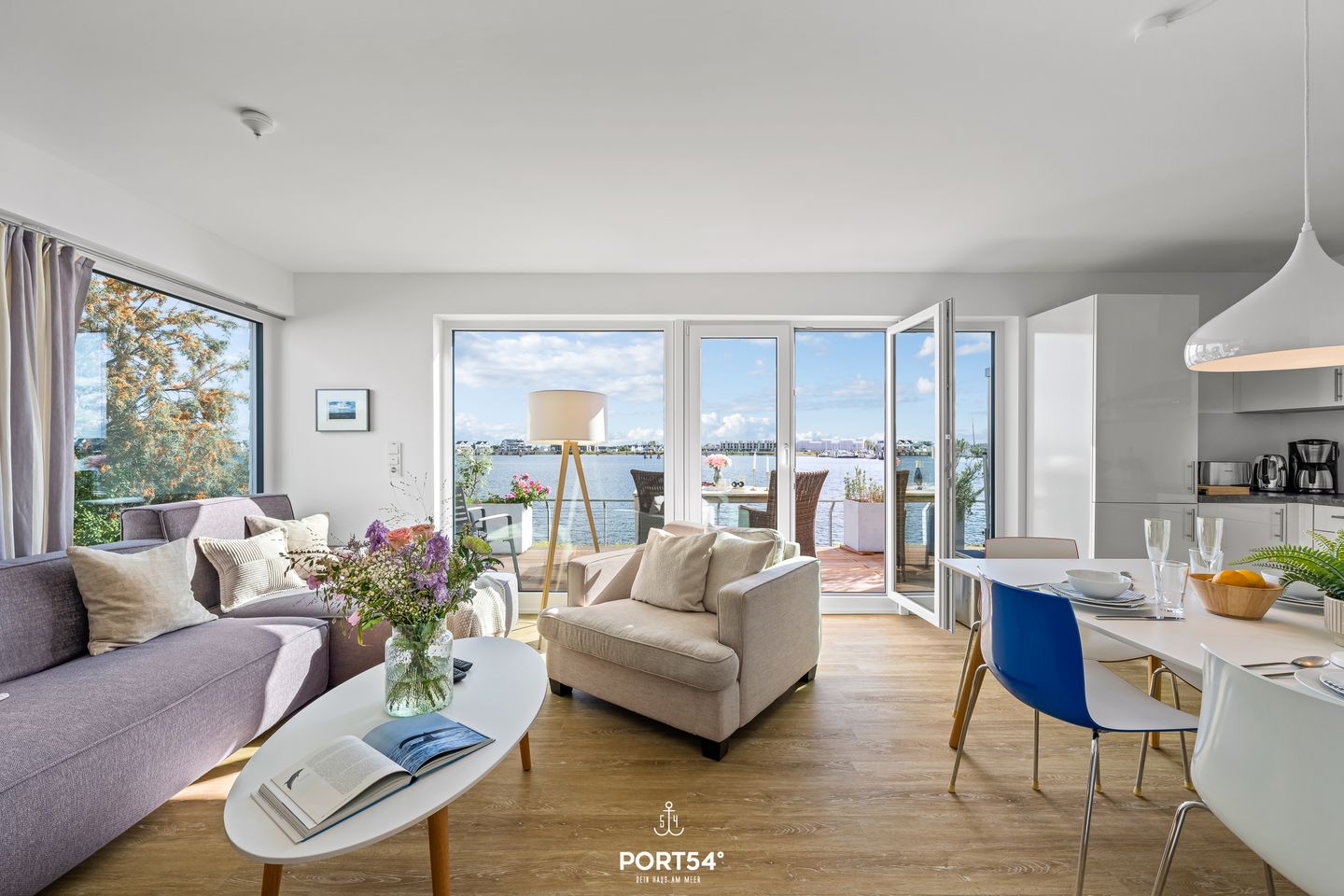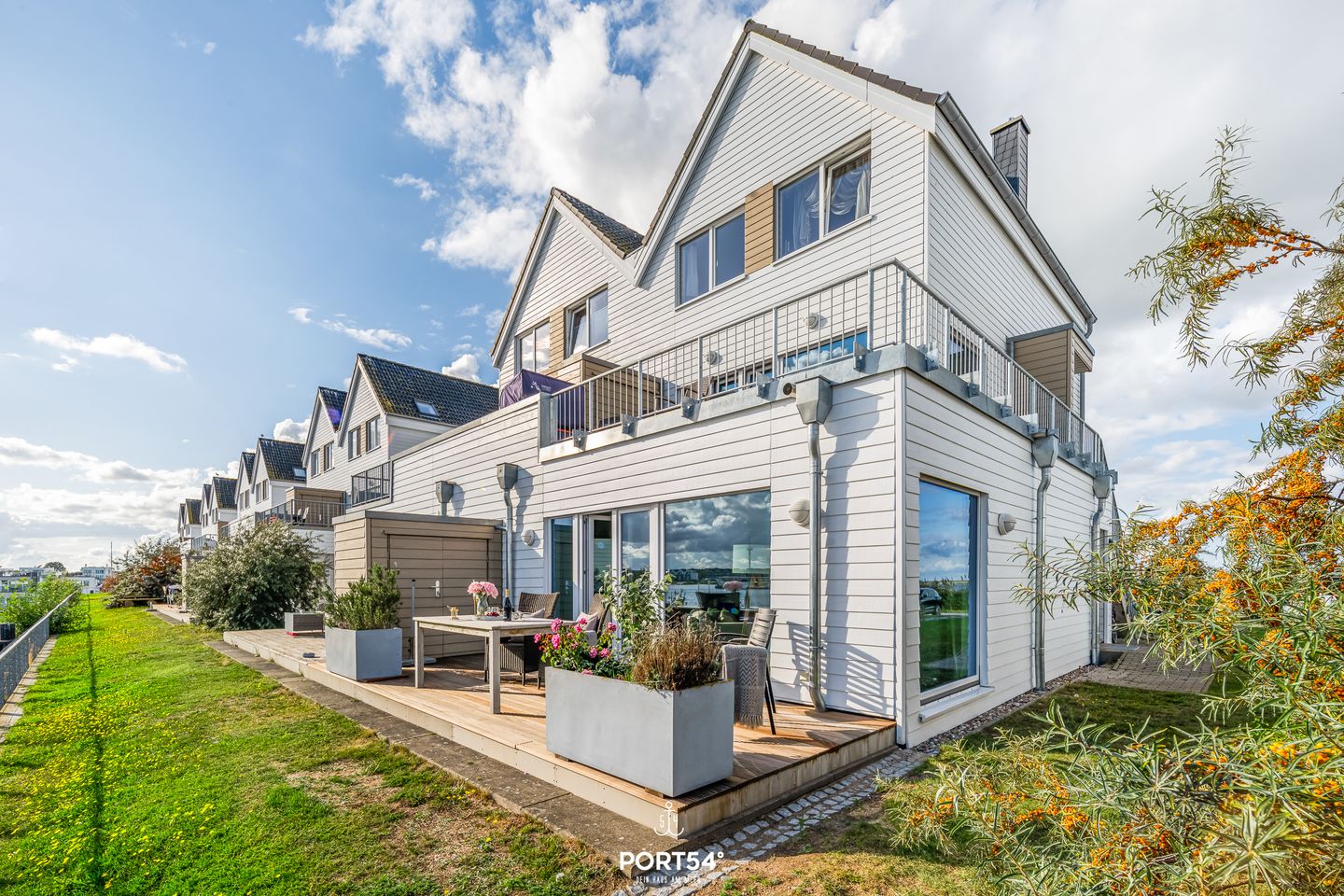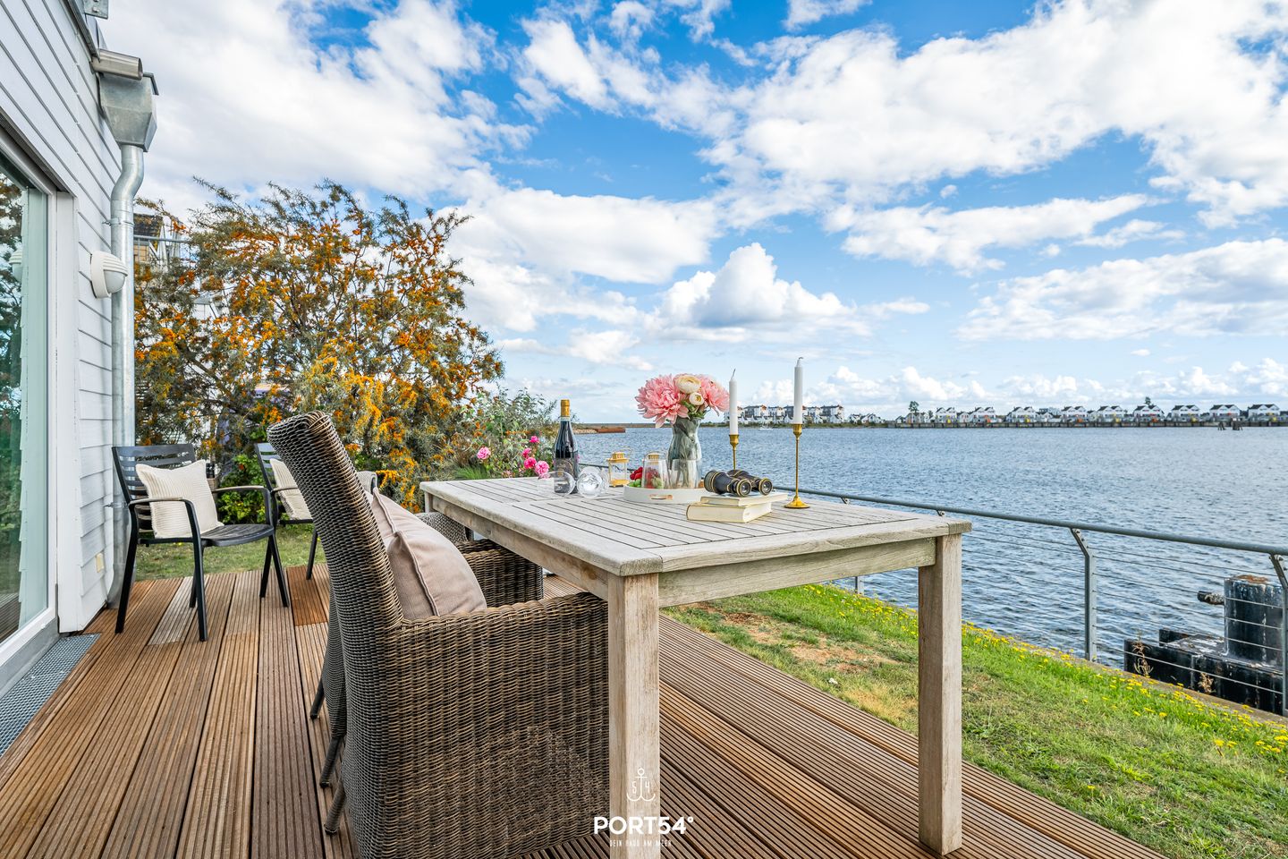 Ein besonderes Highlight ist die großzügige Terrasse, die mit Gartenmöbeln und Sonnenliegen ausgestattet ist und Ihnen einen einzigartigen Ausblick auf das Wasser verschafft.